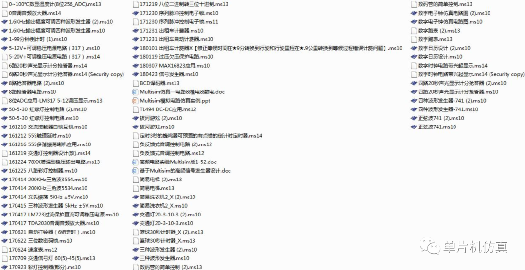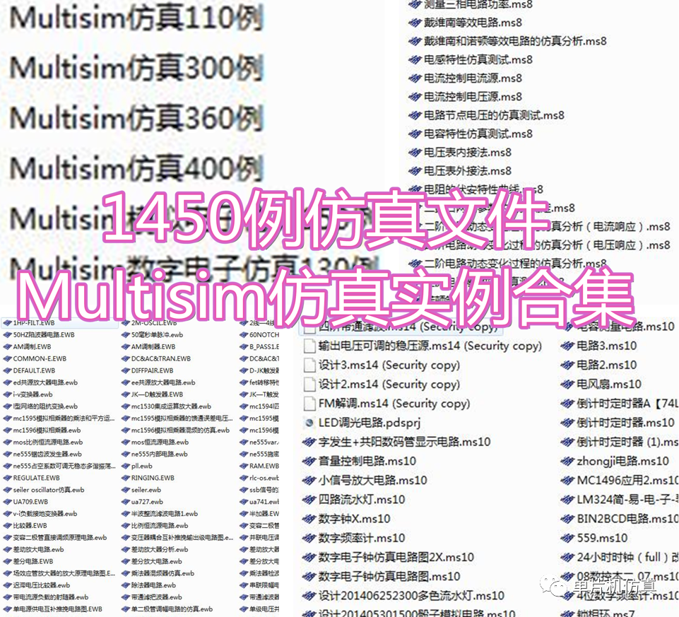 Multisim仿真实例1450例,含常见的数电模电,运算放大电路,流水灯、抢答器、报警器等等,资料种类很多,是电子电气类参考学习的好资料,十多块钱啦!
