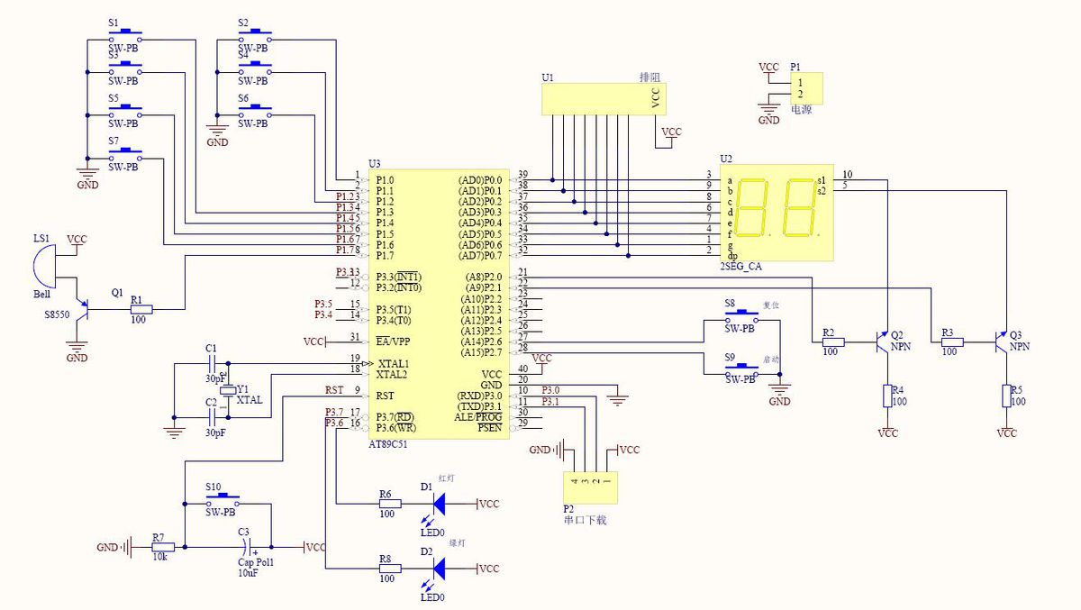 通过启动按键来开始表决倒计时,倒计时时间为10s,10s内可以通过表决按键来进行表决。10s后显示表决结果,如果数码管显示减号表示表决不通过,红灯亮。如果表决人数大于等于4人则表示表决通过,显示等号,绿灯亮。可以通过复位按键来复位数据。