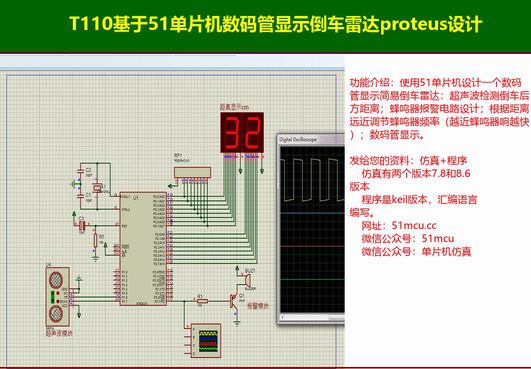 T110基于51单片机数码管显示倒车雷达proteus设计
