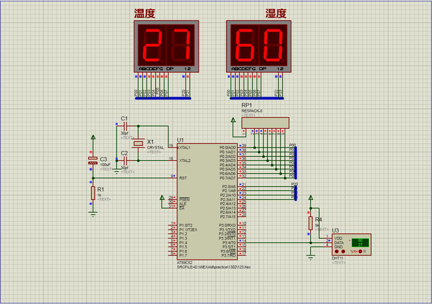 T120基于51单片机DHT11数字温湿度器的proteus设计