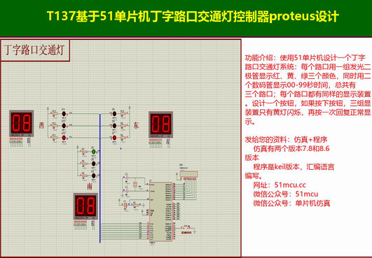 T137基于51单片机丁字路口交通灯控制器proteus设计