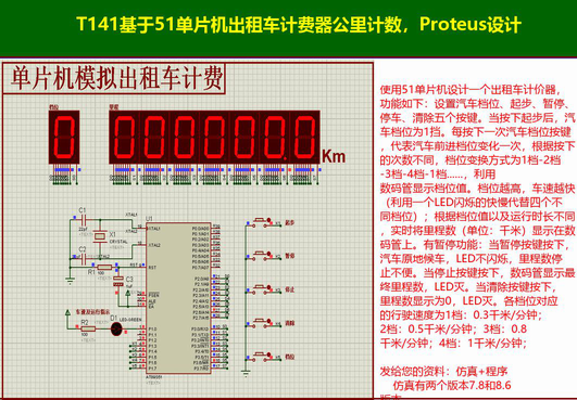 T141基于51单片机出租车计费器公里计数,Proteus设计