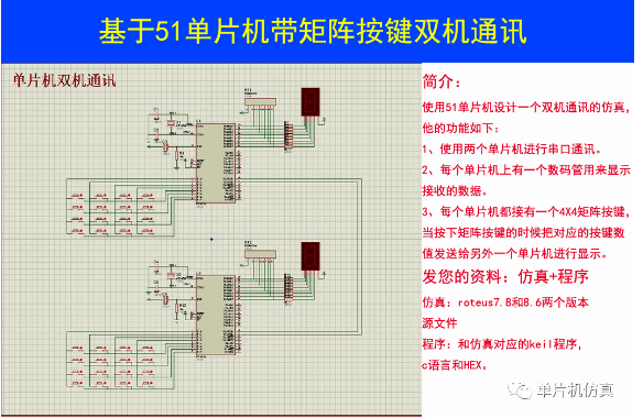 使用51单片机设计一个双机通讯的仿真,他的功能如下:
