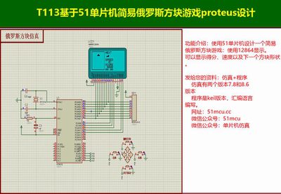 T113基于51单片机简易俄罗斯方块游戏proteus设计一、设计实现功能如下:功能介绍:使用51单片机设计一个简易俄罗斯方块游戏:使用12864显示。可以显示得分、速度以及下一个方...