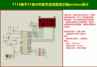 T114基于51单片机数字温湿度显示器proteus设计一、设计实现功能如下:功能介绍:使用51单片机设计一个数字温湿度显示器:DHT11传感器采集温湿度信息;4位LED数码管显示温湿度...