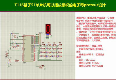 T116基于51单片机可以播放梁祝的电子琴proteus设计一、设计实现功能如下:功能介绍:使用51单片机设计一个简易电子琴:利用4*4矩阵按键不同的音符。要求按下按键发声,松开延...