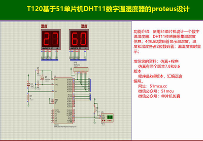 T120基于51单片机DHT11数字温湿度器的proteus设计一、设计实现功能如下:功能介绍:使用51单片机设计一个数字温湿度器:DHT11传感器采集温湿度信息;4位LED数码管显示温湿度...
