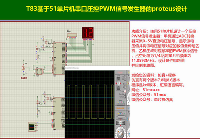 T83基于51单片机串口压控PWM信号发生器的proteus设计一、设计实现功能如下:功能介绍:使用51单片机设计一个压控PWM信号发生器:甲机通过ADC转换器采集0~5V直流电压信号,显...